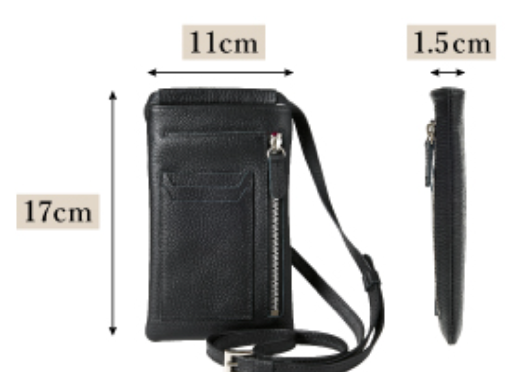 サイズ:11cm×17cm×1.5cm、重量:約100g前後、カラー:ブラック、キャメル 、仕様:スマホ用ポケット×1、カードポケット×3、ファスナー付ポケット×1 、用途:スマホポーチ、スマホショルダー、財布、カード入れ、カードケース、小銭入れ、コインケース 、ブランド名:Amidiio