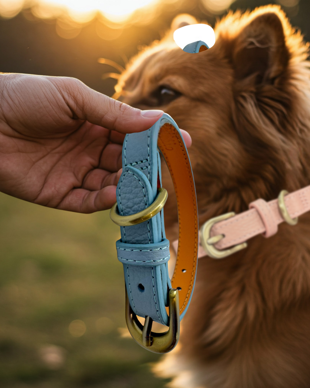 Amidiio(アミーディオ) 犬 首輪 小型犬 革 【愛犬に寄り添う柔らかレザー】柔らかい 丈夫 小型犬用首輪 おしゃれ かわいい ブルー