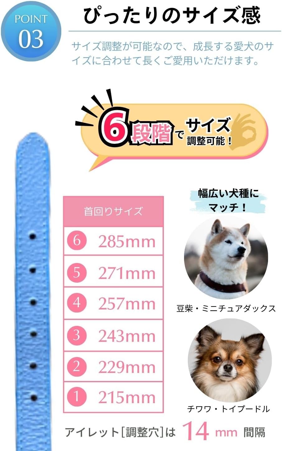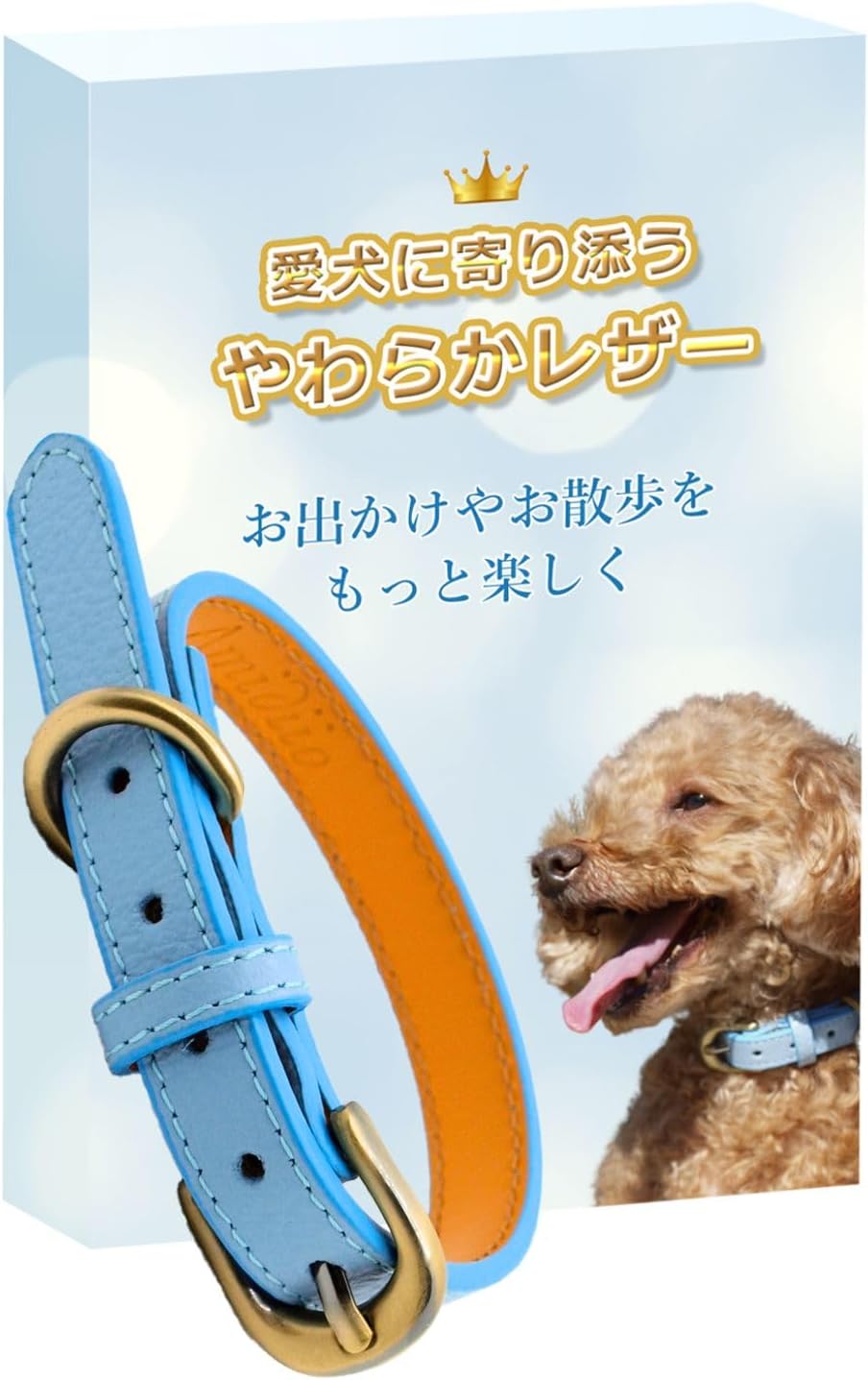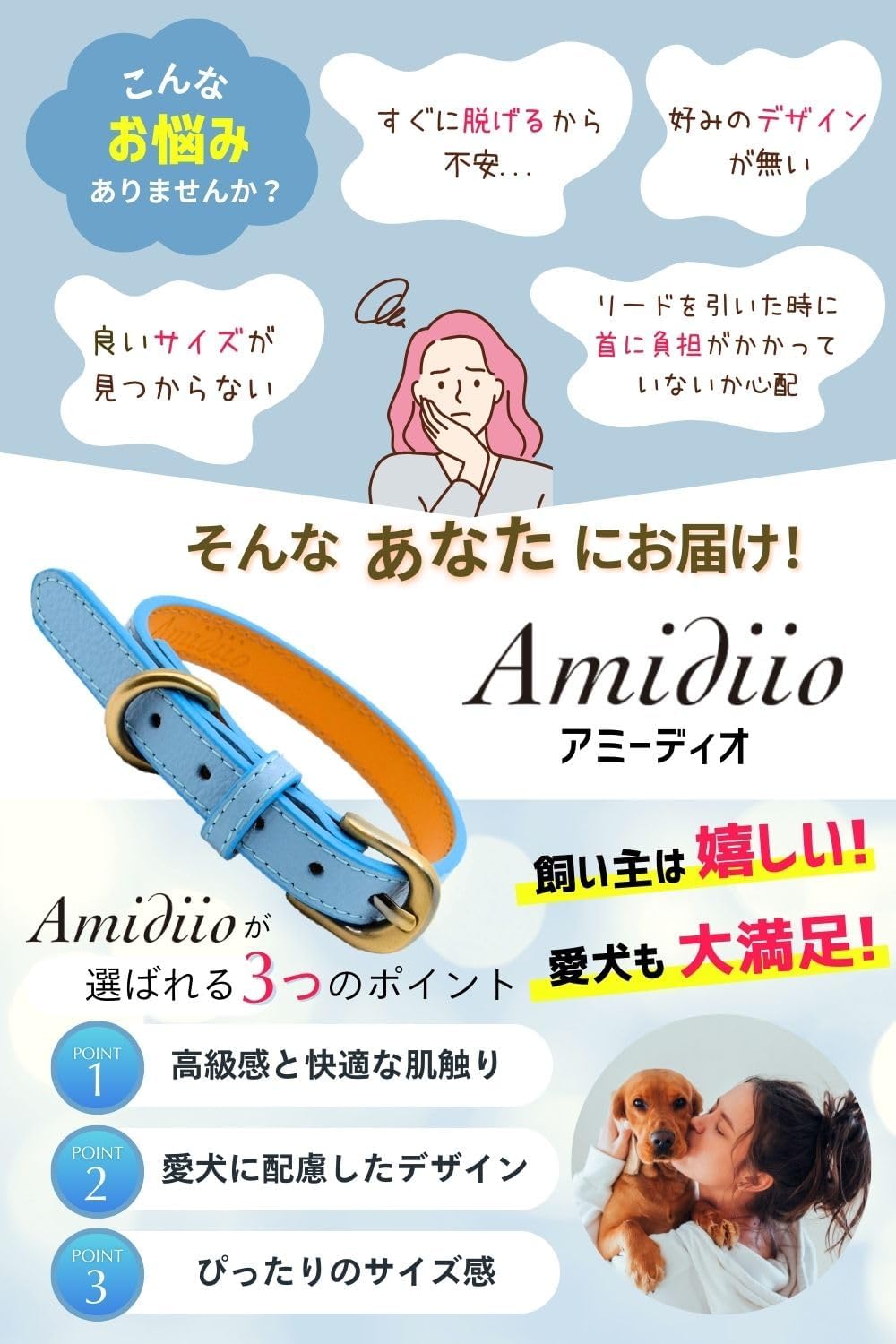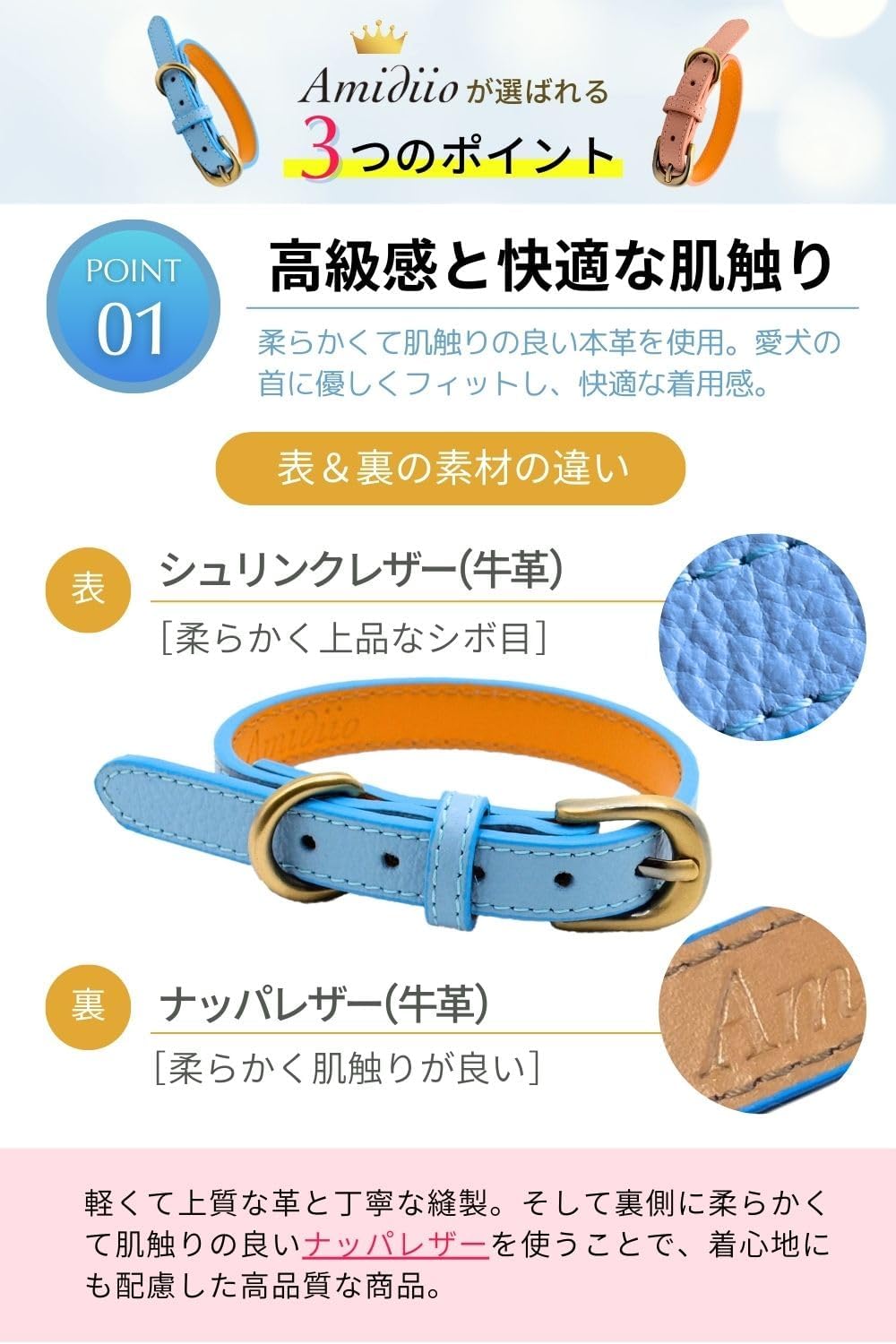 Amidiio(アミーディオ) 犬 首輪 小型犬 革 【愛犬に寄り添う柔らかレザー】柔らかい 丈夫 小型犬用首輪 おしゃれ かわいい ブルー