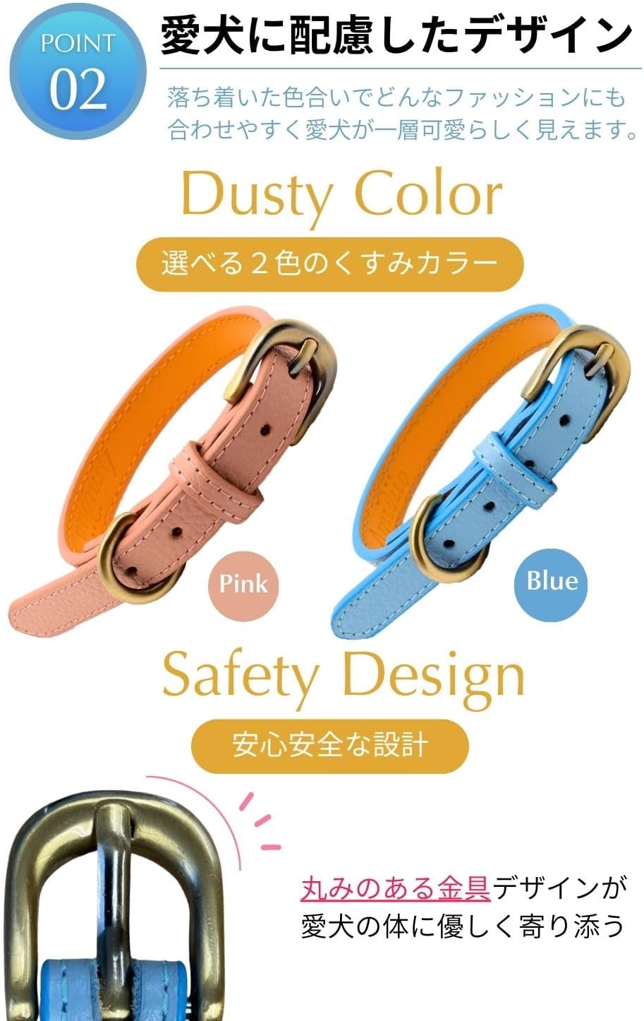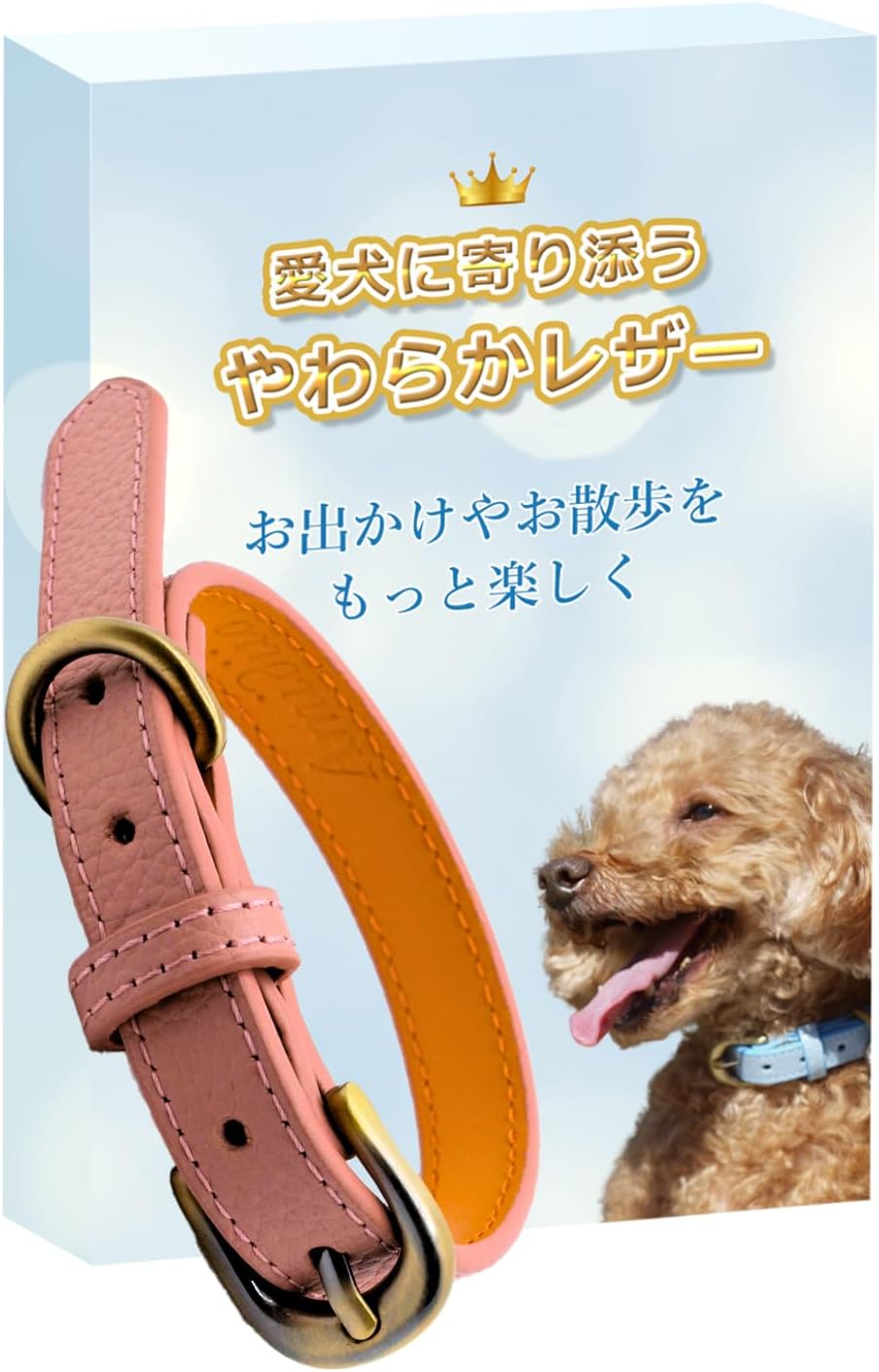 Amidiio(アミーディオ) 犬 首輪 小型犬 革 【愛犬に寄り添う柔らかレザー】柔らかい 丈夫 小型犬用首輪 おしゃれ かわいい ピンク